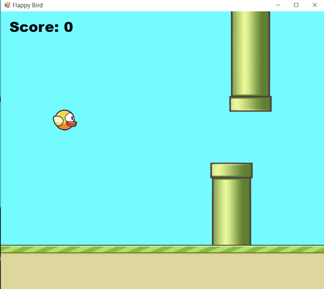 A game where user clicks space bar to keep the bird alive without hitting the poles. Using C#, .NET